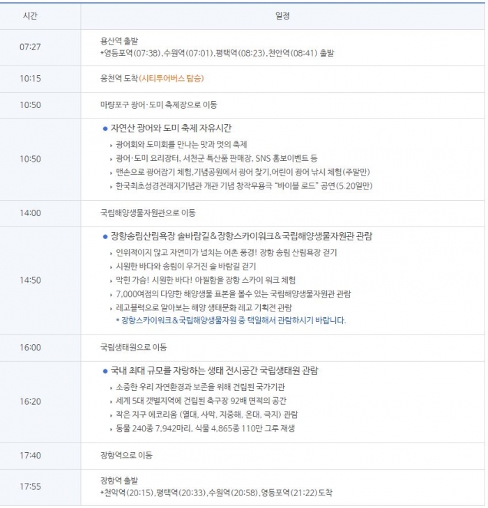 << 축제 서천시티투어 기차여행 프로그램>>