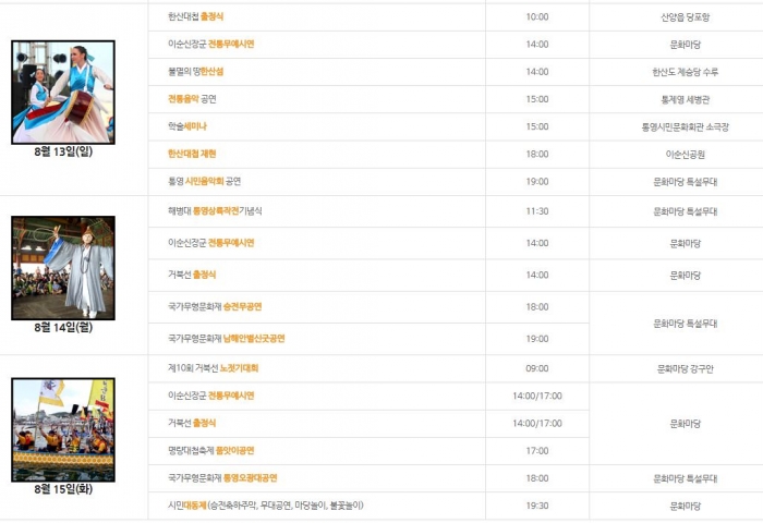 태그한산섬학익진이순신장군거북선노젓기대회통영오광대전통무예