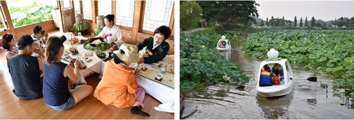 하트 포토존 등 - 즐길거리 : 야외 물놀이장, 파도물장, 물총페스티벌, 닥터피쉬 체험, 연꽃길 보트탐사, 생태갯벌체험, 선물폭탄 게릴라 연꽃비행선, 연이오빠 자전거투어, 열기구 체험, 드론체험, 소망풍등