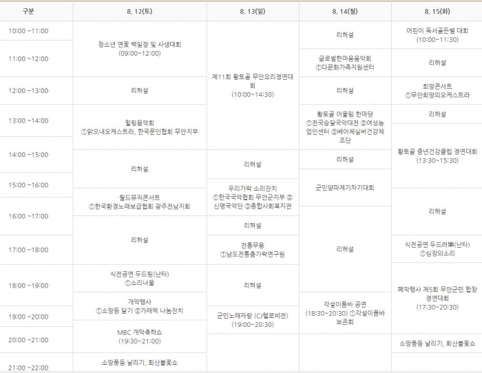 - 연계행사 : 무안연꽃축제 특별관광열차 운행(코레일 연계), 무안시티투어