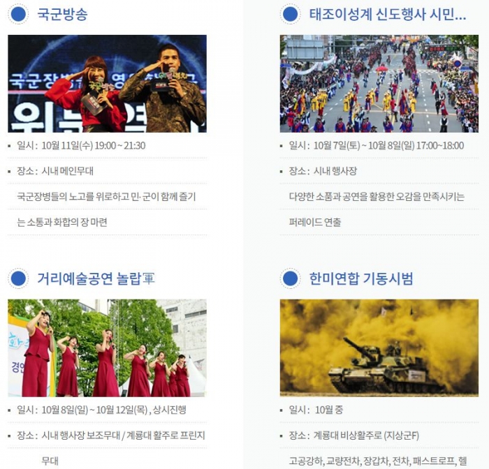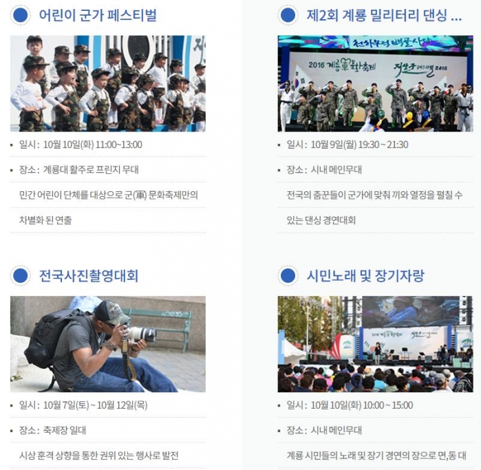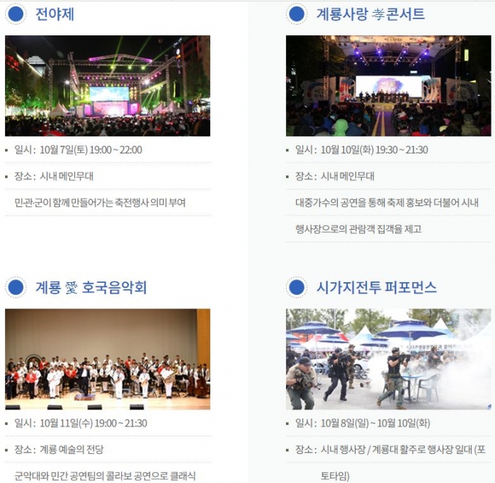 | 후원 | 국방부, 문화체육관광부, 충청남도, 육군본부, 해군본부, 공군본부 |