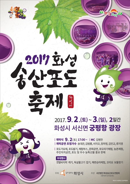 천혜의 자연환경과 더불어 화성의 우수한 포도생산 기반을 토대로 고품질의 영양높은 포도를 생산는 송산포도연합회가 주관한다.