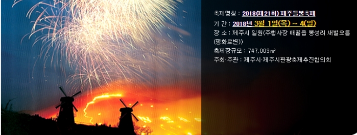| 주제공연 : 탐라화희(화심대행진 및 달집태우기) | 19:45~20:00 | 특설무대[안치대, 광장] | |