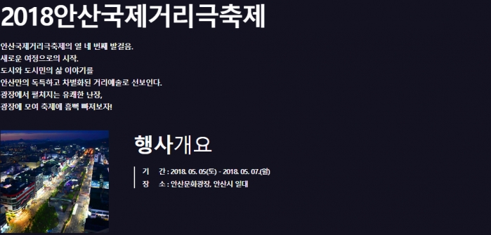 안산국제거리극축제는 2005년 시작해 안산에서 매년 5월 개최하는 거리예술축제입니다.
