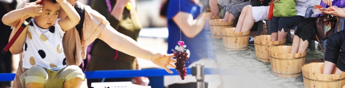 포도따기, 포도밟기, 포도투호, 물놀이 등 다양한 체험