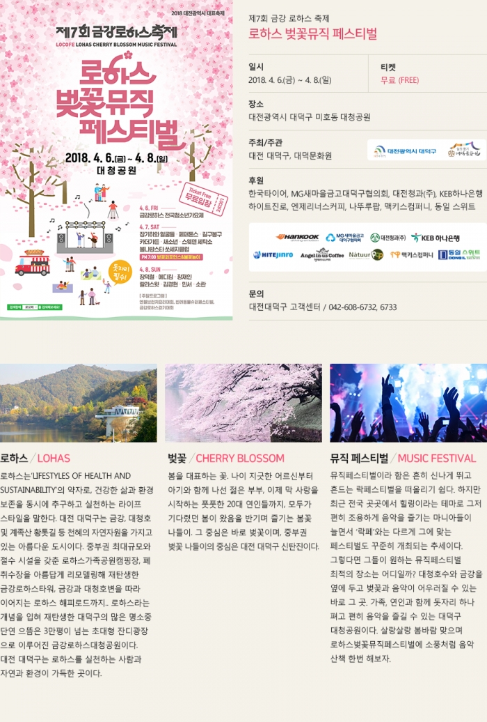 태그금강로하스뮤직페스티벌대전대덕구축제로하스벚꽃축제벚꽃음악축제로하스걷기대회로하스 라인업로꼬페