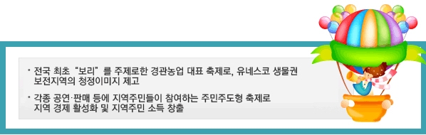 - 주 제 : 한국인의 본향 고창, 피어나는 경관농업