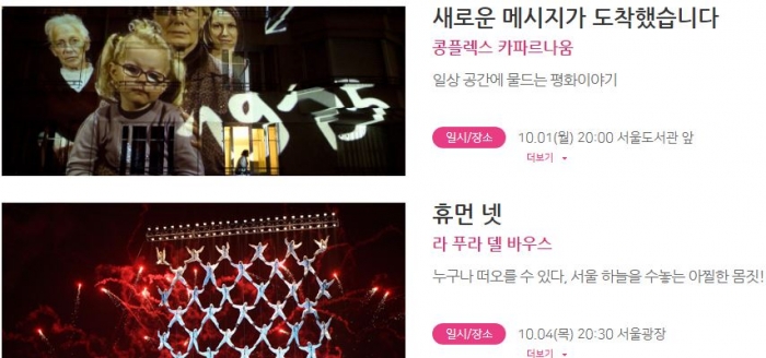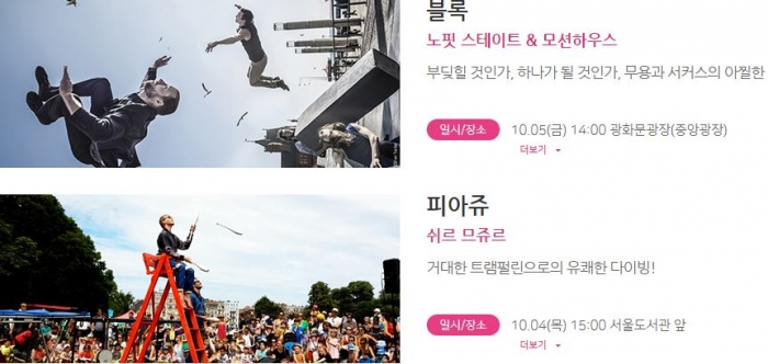 서울거리예술축제는 일상의 공간을 공연장으로 바꾸고,관객과 배우의 경계를 허물며,시민들의 참여를 바탕으로 도시와 사람, 예술이 만나는 거리예술축제입니다.