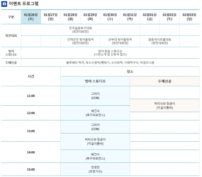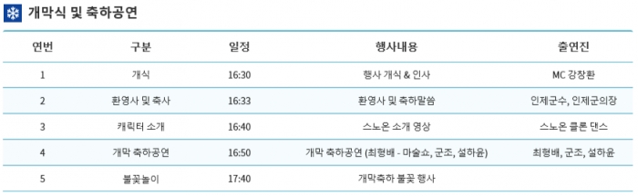 [축제일정표] 개막식: 1월 26일 (토) 16:30~17:40