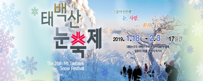 - • 장 소 : 태백산 국립공원, 황지연못 문화광장, 구문소, 철암 쇠바우골 탄광 문화장터 전국대학생 눈 조각 경연대회
