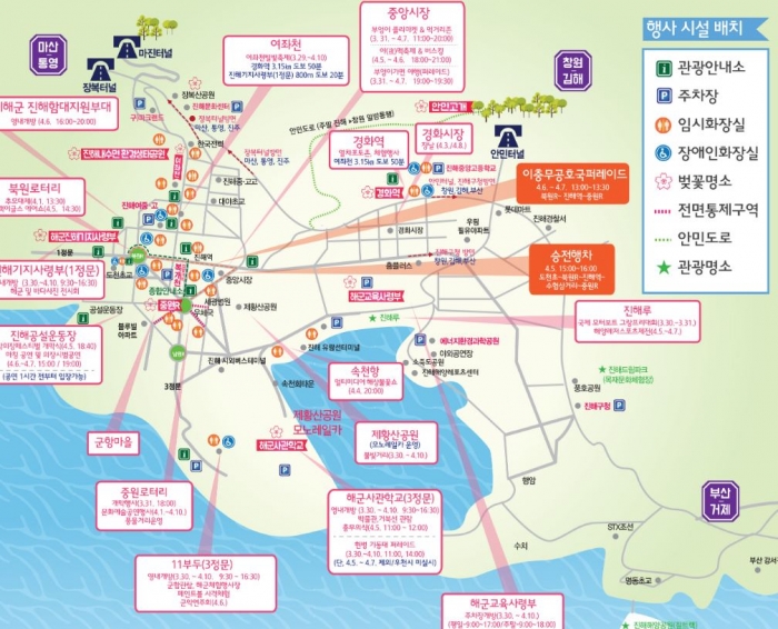 문화예술행사, 세계군악의장페스티벌, 팔도풍물시장 등을 아름다운 벚꽃과 함께 즐길 수 있는 봄 축제로 해마다 알찬 발전을 거듭하여