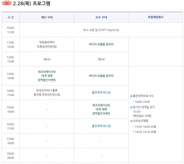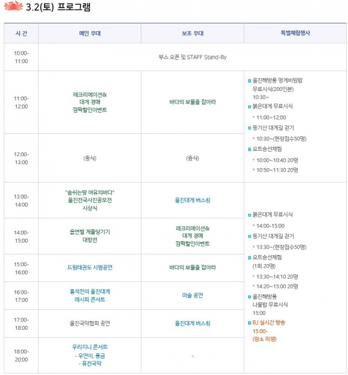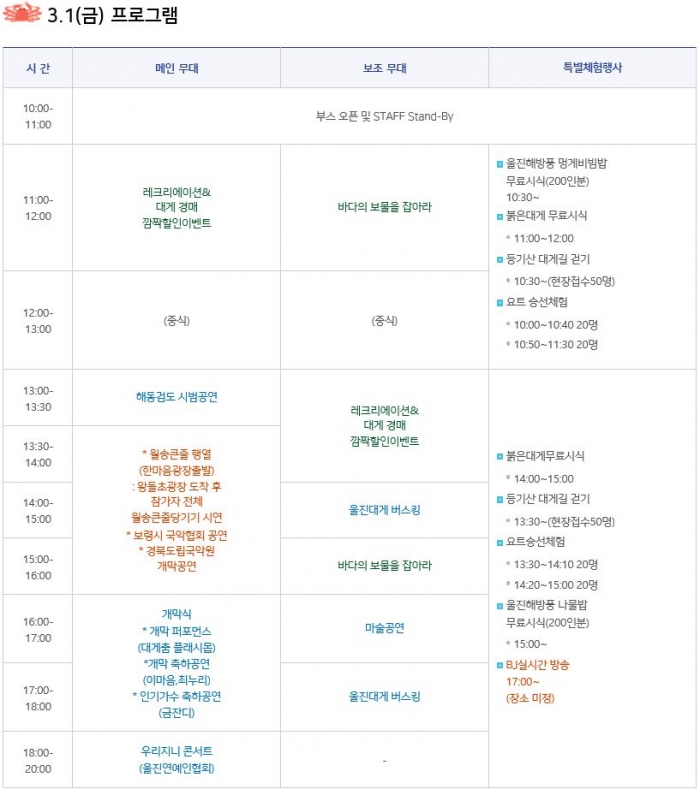 무대 3곳에서 대게경매, 깜짝이벤트, 가족단위 레크레이션 등