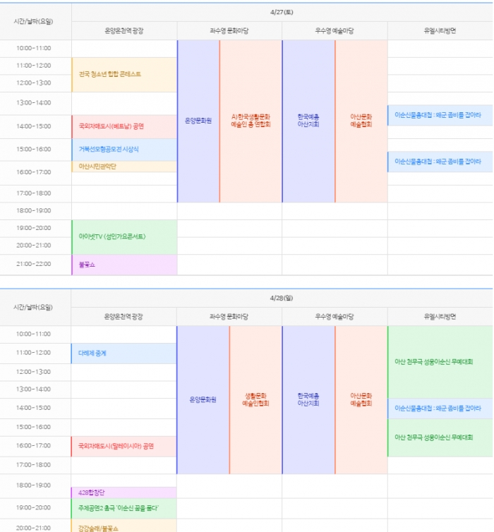 < 일정: 온양온천역광장 및 시내 >