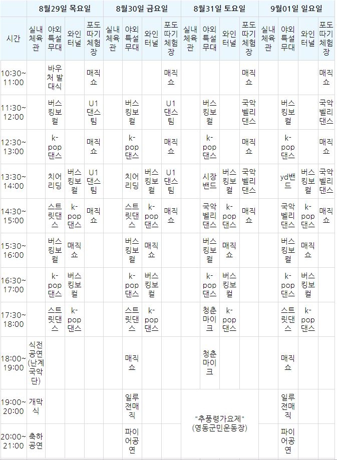 태그영동축제포도마라톤대회추풍령가요제포도따기체험포도밟기체험