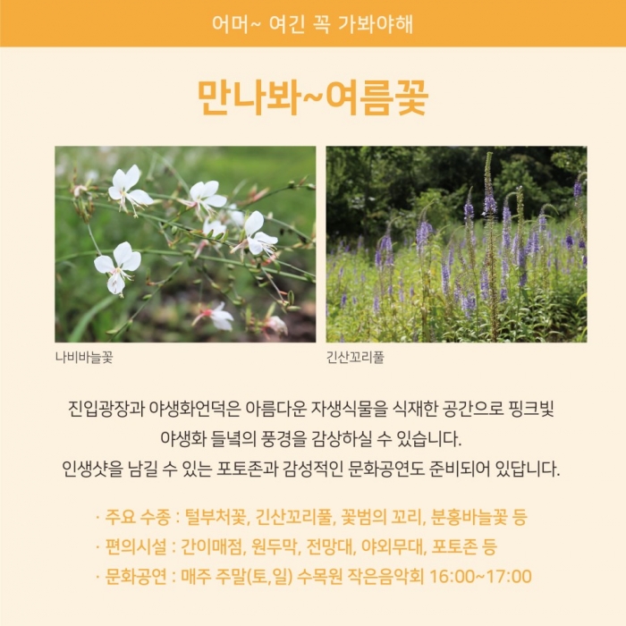 사랑하는 가족, 친구, 연인과 함께 오셔서 자연에서 힐링도 하시고, 아름다운 자생식물들도 구경해 보세요 ^^