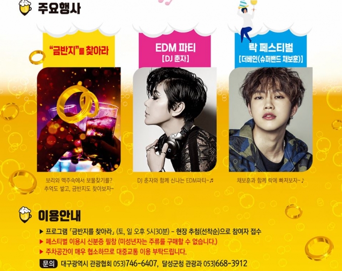 태그달성맥주축제달성군축제대구시청화원LH홍보관설화명곡역금반지를찾아라락페스티벌EDMDJ춘자