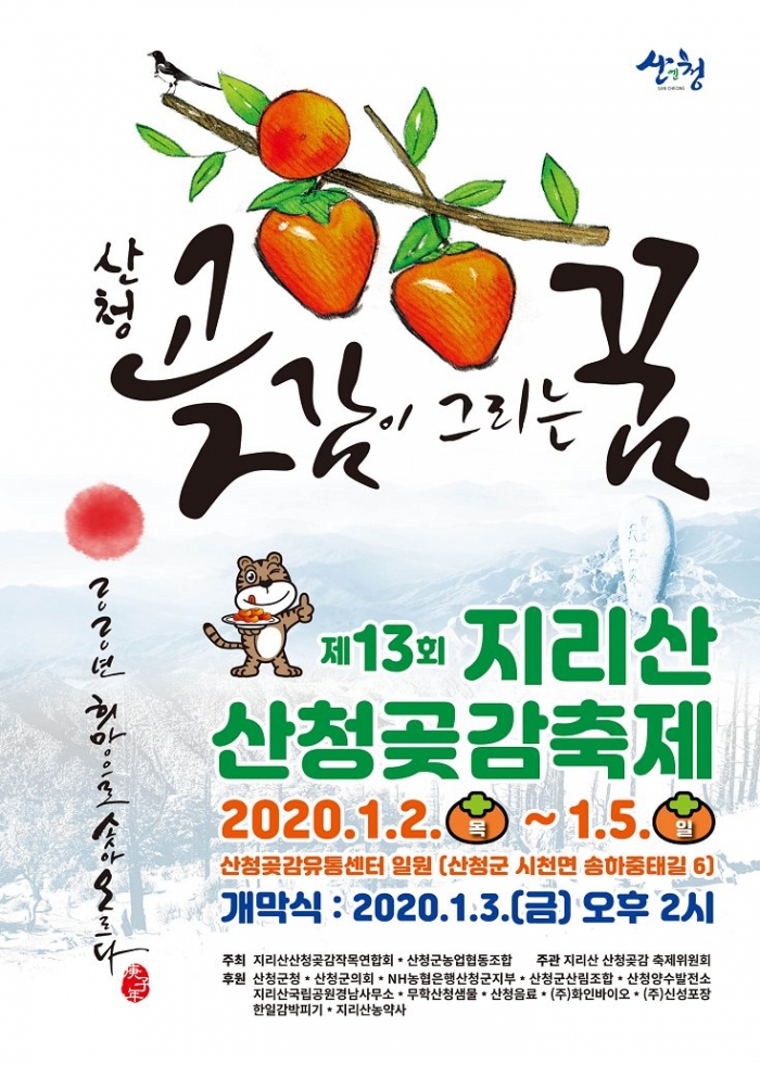 산청곶감은 지난 2016년부터 4년 연속 대한민국 대표 브랜드로 선정됐다. 특히 산청곶감의 원료감인 산청 고종시 역시 2016년부터 4년 연속 대한민국 대표과일로 선정되었다. 이는 산청곶감의 맛과 품질이 전국 최고임을 입증한다. 산청곶감은 국내 유일하게 전통방식인 도넛 모양으로 만들어진다. 자연당도가 높고, 부드러우면서 차진 식감이 탁월하다. 고종황제 진상품, 영국 엘리자베스 여왕 선물, 청와대 설 선물 등 맛과 멋에서 브랜드가치를 높이 평가받고 있다. 내년 1월 2일 ~ 5일까지 열리는 이번 지리산 산청곶감축제에서는 곶감품평회, 곶감 만들기, 곶감 디저트 만들기, 감잎차 족욕, 판매장 운영 등의 다양한 프로그램이 운영된다.