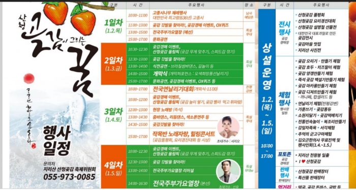 전국 주부가요열창 예선 및 본선, 산청곶감 올림픽, 감잎차 족욕, 곶감 디저트 만들기 등