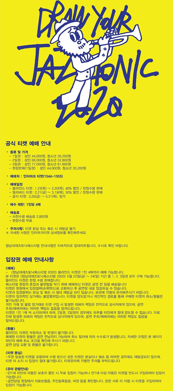 <청남대재즈토닉페스티벌 2020> 공연을 설레고 기쁜 마음으로 기다려주셨을 여러분들과 갑작스러운 공연 취소로 향후 일정에 차질이 생기거나 불편하게 된 많은 분들에게 진심으로 사과의 말씀을 전합니다.