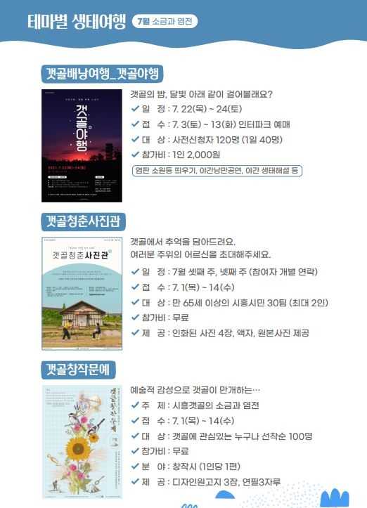 4계절동안 만나는 제16회 시흥갯골축제는 온라인 월별 테마프로그램과 갯골생태공원 현장에서 만나는 소규모 투어 프로그램으로 방역관리하에 진행되는 온오프라인축제
