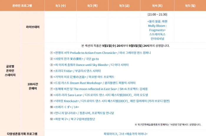 행사기간: 2021년 9월 1일(수) ~ 9월 5일(일), 5일간