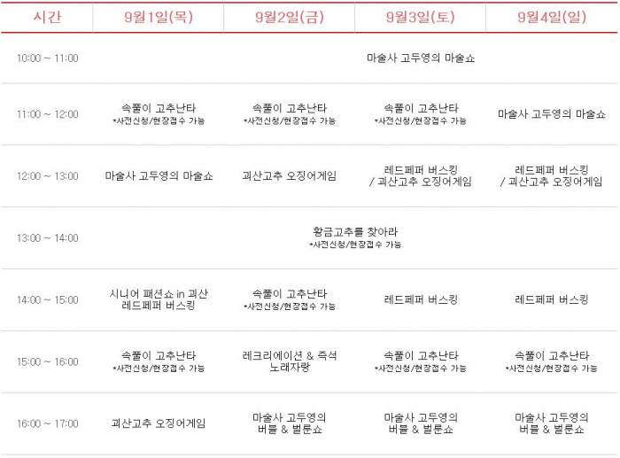 태그괴산축제황금고추를찾아라속풀이고추난타고추방앗간레드페퍼버스킹마술사 고두영 마술쇼