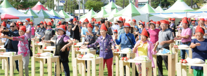 150개의 속풀이 고추난타 도마를 설치, 팔에 만보기를 착용한 참여자가 반근의 고추가 담긴 자루를 난타하여 숫자가 많이 나온 참여자 3명에게 상품을 지급하는 경기