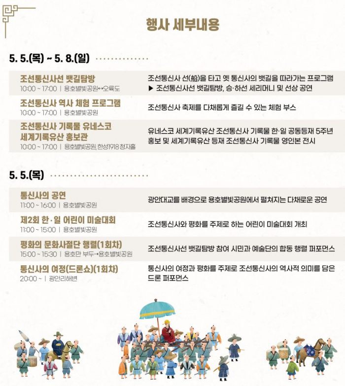 - 장 소: 용호별빛공원, 조선통신사 역사관, 한성1918 등