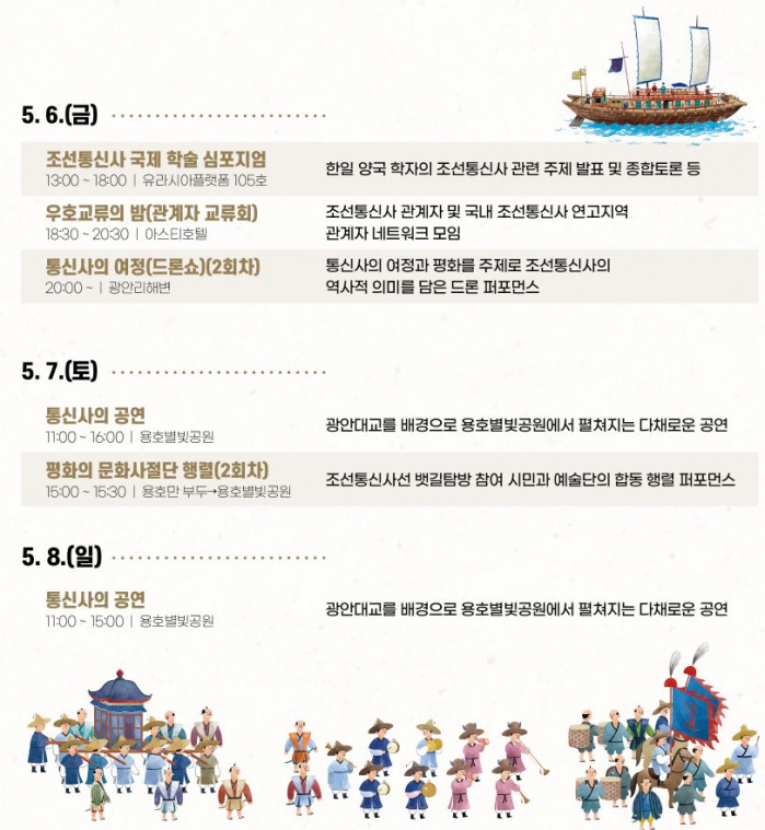 - 공연: 거리공연, 통신사의 여정(드론쇼)