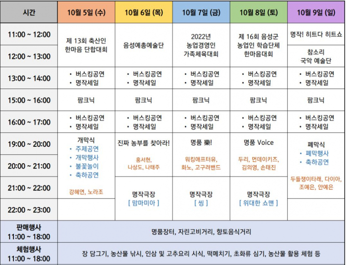 음성군 농산물인 명작의 생산과 유통 그리고 소비에 새로운 도약으로 축제는 통합과
