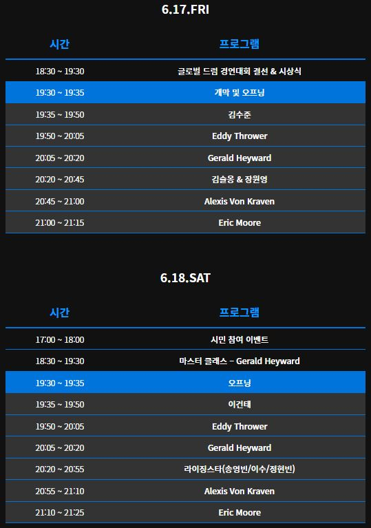수준 높은 공연이 준비되어 있는 2022 서울드럼페스티벌에 많은 관심과 참여 부탁드립니다.
