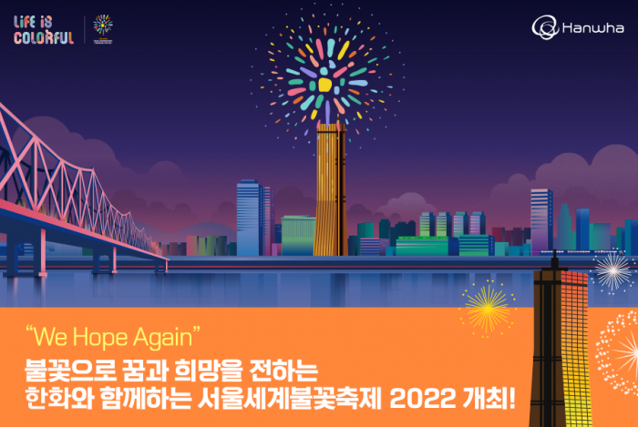 ‘서울세계불꽃축제’가 코로나19 이후 3년만에 ‘We Hope Again’을 주제로 한국, 일본, 이탈리아 3개국의 참여로 오는 10월 8일(토) 여의도 한강공원에서 개최된다. 이번 축제는 10월 8일(토) 여의도 한강공원 멀티플라자에서 13시부터 18시까지 사전행사로 시민참여 프로그램이 운영된다. 본행사인 개막식 및 불꽃쇼는 19시부터 20시 40분까지 100분간 펼쳐지고, 20시 40분부터 21시 30분까지 50분간은 애프터 파티(DJ공연, 미디어쇼)가 펼쳐진다.