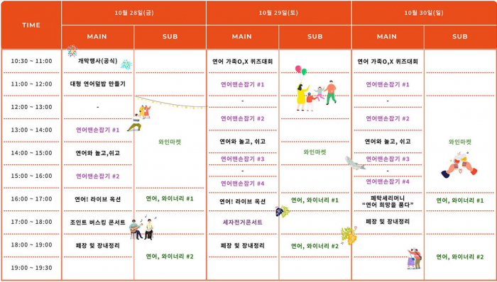 관람객의 미각을 자극할 수 있는 연어와 와인을 접목한 첫 시도로 연어요리와 와인 시식회(연어 와이너리 투어), 강물을 거스르는 연어의 힘찬 도전을 상징하는 도전 연어 런(Run) 챌린지 등 다양한 프로그램이 준비될 예정이다.