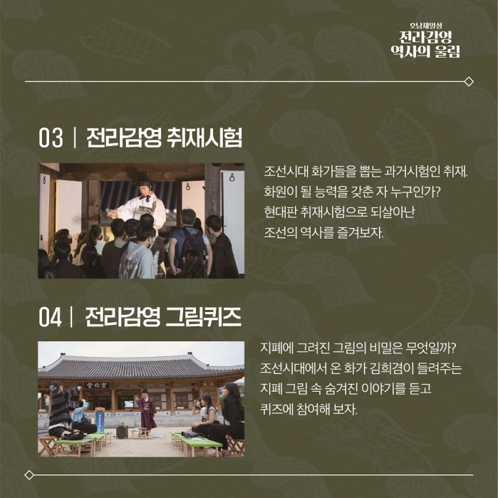 ‘전라감영 취재시험’과 ‘전라감영 그림퀴즈’는 올해 첫선을 보이는 프로그램으로,