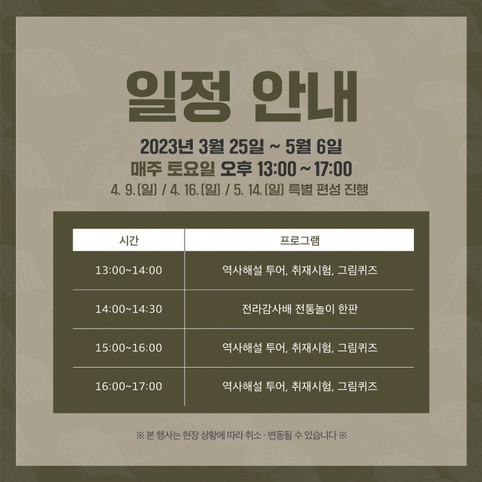 *행사기간 : 2023. 3. 25.(토) ~ 2023. 5. 6.(토) 매주 토요일