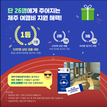 1등 : 50만원 상당의 항공, 숙박, 마라톤 참가비 지원 (1명)