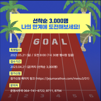 - 참가신청 : 제주국제관광마라톤 공식 홈페이지에서 온라인 신청