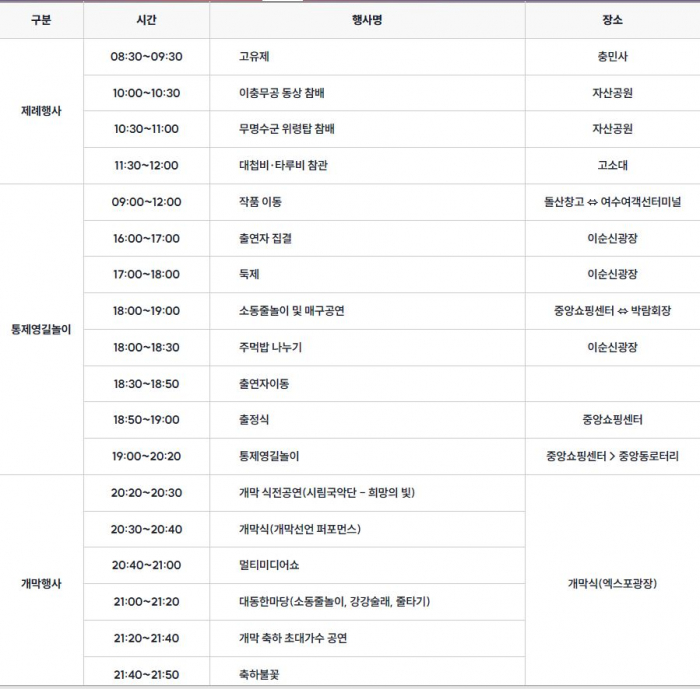 통제영길놀이 구간
