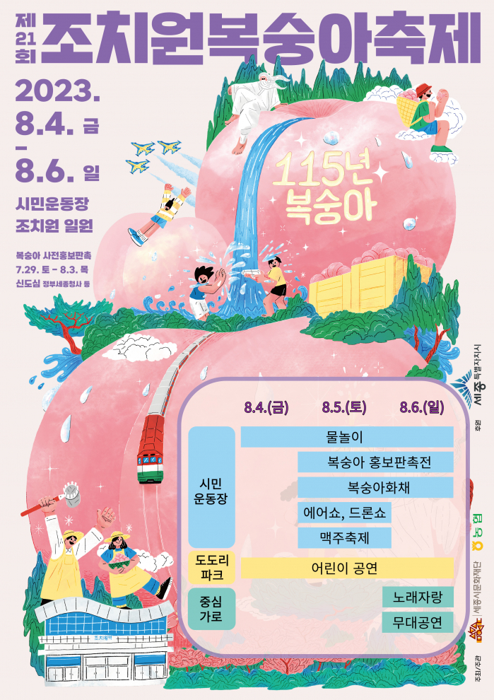 프로그램: 물놀이, 드론쇼, 시민기획 프로그램, 복숭아 판촉행사 등