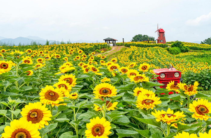 해바라기 조기 개화로 올해는 축제 개막일을 앞당겼습니다.