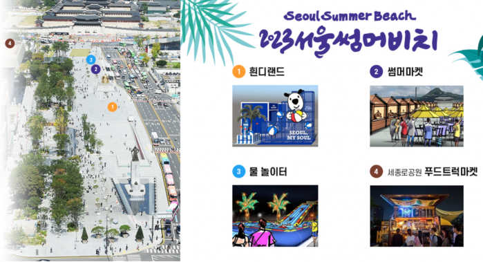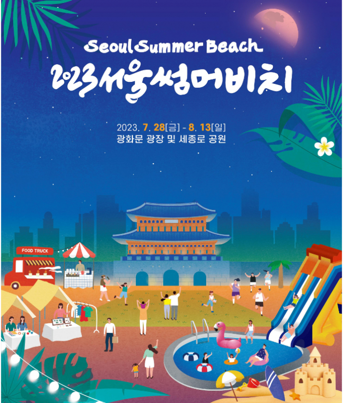 2023년 여름, 광화문광장에서 시민과 관광객이 즐겁게 휴식을 즐길 수 있는 "서울썸머비치"가 열립니다.