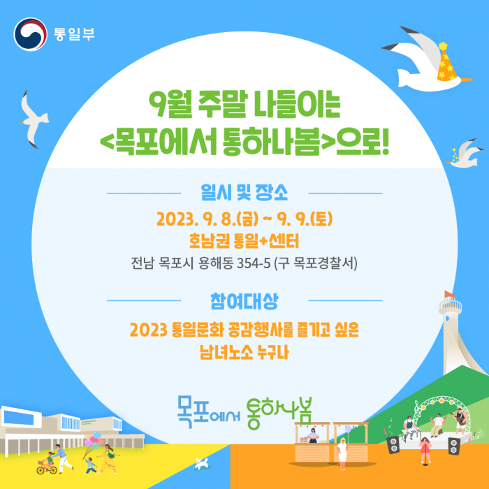 9월 8일(금) ~ 9일(토) 목포에서 열리는 2023 통일문화 공감행사에 여러분을 초대합니다❤️