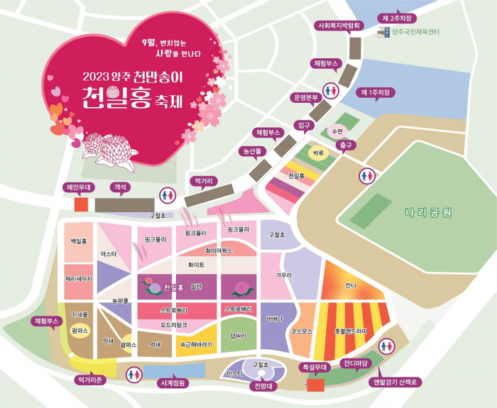 - (체험) 천일홍 및 이색체험 부스(9.23.~9.24.), 양주마을교육공동체 체험부스, 양주 핫플을 찾아라(볼풀 이벤트), 사랑의 메시지(전망대), 토퍼 증정 이벤트 스탬프 투어