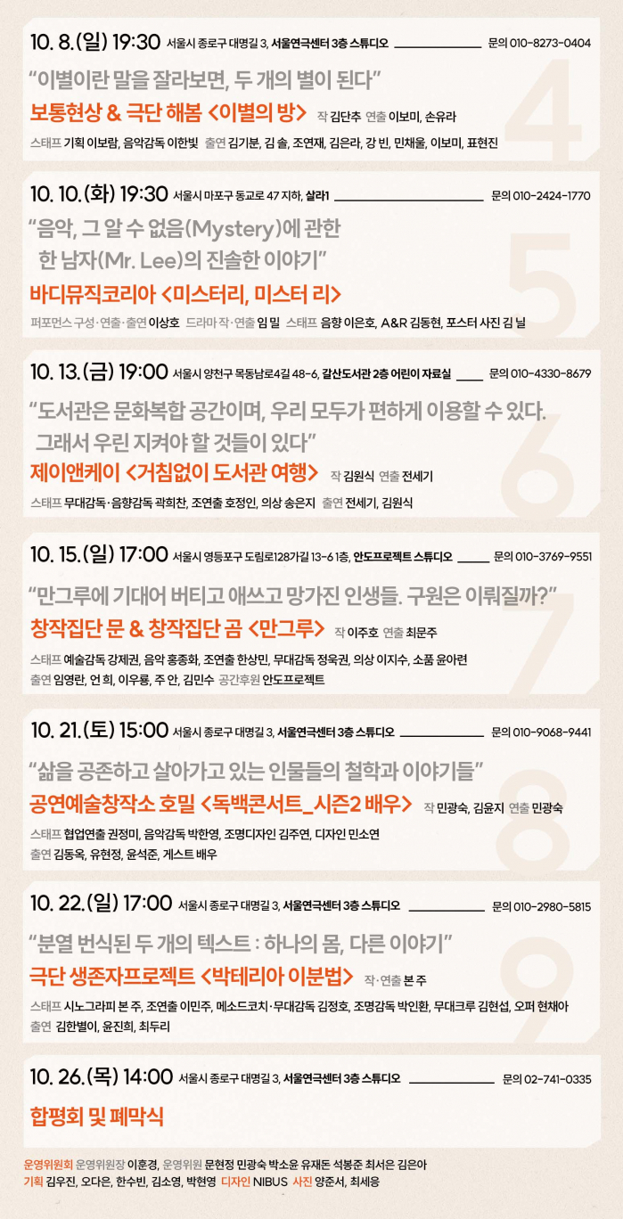 태그#서울창공축제 #서울연극센터 #살라1 #갈산도서관 #안도프로젝트 #대안공간 #대학로축제