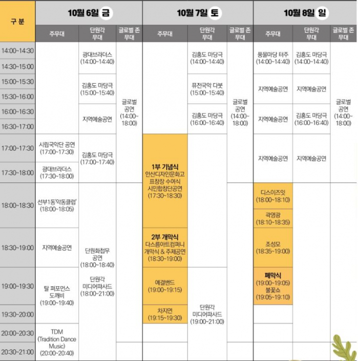 ⦁(공식행사) 개막식, 주제공연 ‘단원 김홍도’, 폐막식 및 불꽃놀이