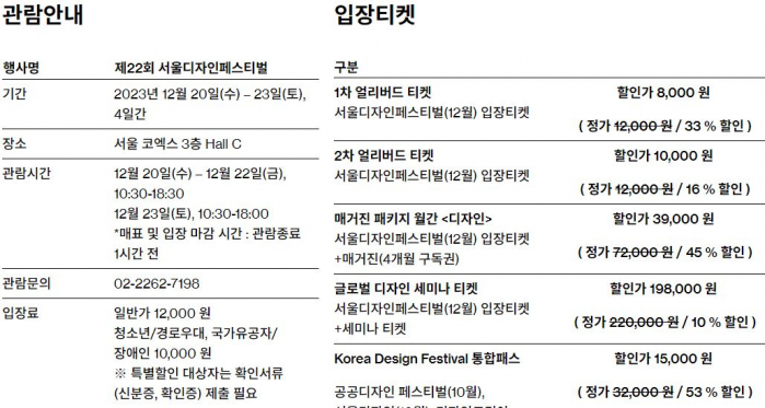 관람시간 12월 20일(수) – 12월 22일(금), 10:30 – 18:30