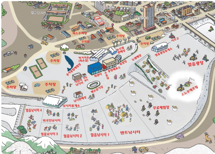 눈광장과 얼음광장에서는 다양하고 재미있는 겨울 레포츠를 체험할 수 있다. 눈광장에서 눈썰매, 스노우 래프팅, 수륙양용차 아르고를 탈 수 있다. 얼음광장에서는 전통 썰매, 스케이트, 얼음 자전거, 범퍼카, 얼음 카트 등 놀이를 즐길 수 있다.