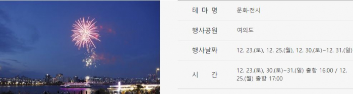 마지막 남은 12월 달력의 날짜들을 한강에서 따뜻한 추억으로 채워보세요!