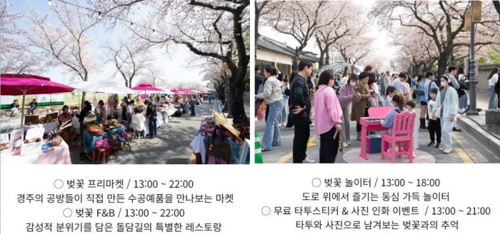 벚꽃이 흩날리는 경주에서 2024 경주벚꽃축제가 3월 23일부터 24일까지 대릉원 돌담길에서 개최됩니다.