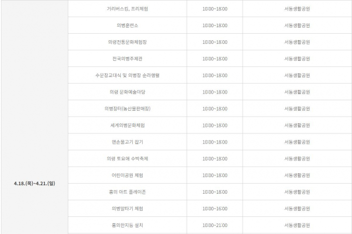 태그의령축제의령의병기념사업회이호섭가요제의령서동생활공원